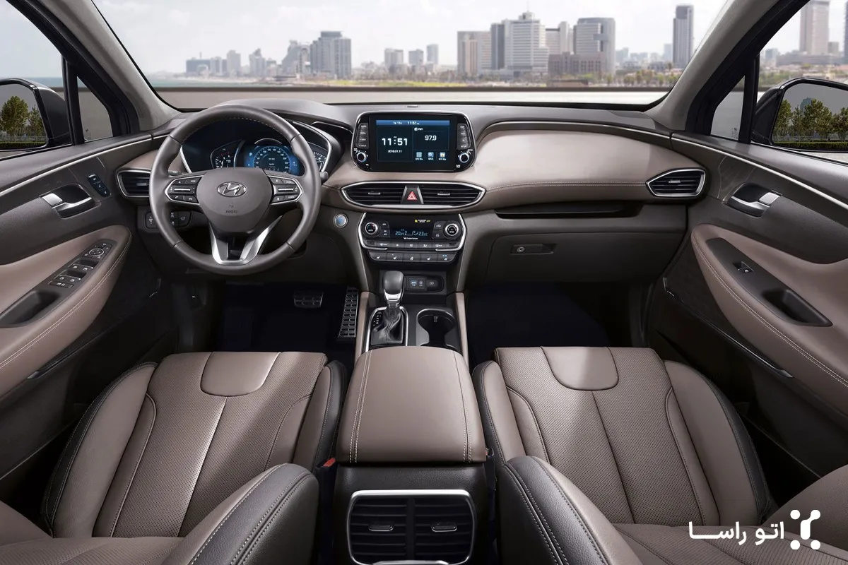 در بحث امکانات رفاهی و ایمنی سانتافه، هیوندای سنگ تمام گذاشته است. این خودرو (مخصوصاً در نسخههای فول وارداتی) لیست کاملی از امکانات را دارد که در ادامه بهطور خلاصه معرفی کردهایم: